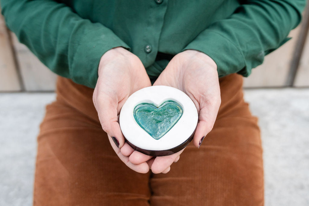 From my hands to your heart. Using a small portion of your loved one's ashes, I will create a unique ceramic piece that celebrates their life and keeps them close to your heart.